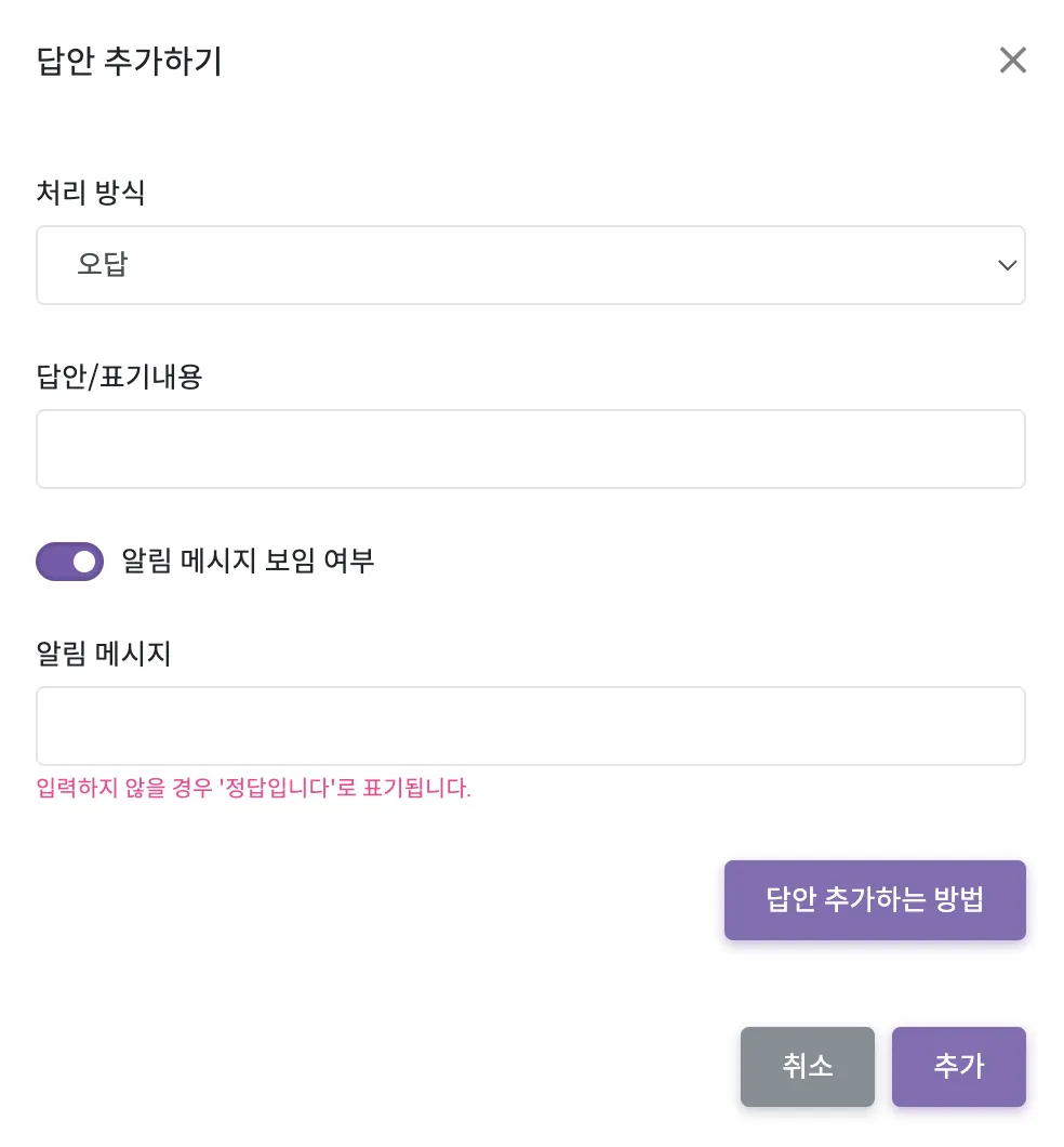 [오답 선택지] 정답이 아닌 다른 답을 골랐을 경우 오답으로 표시되게 설정 가능